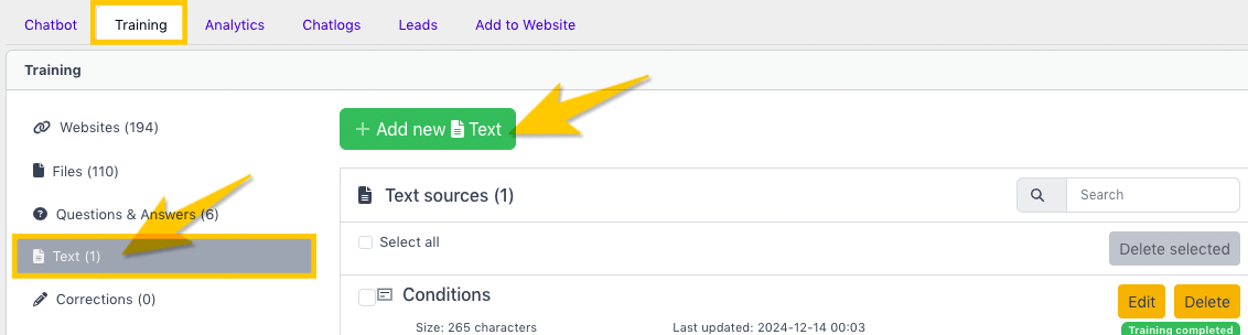 Text entries are a convenient way to add information directly into your Cleva.Bot's knowledge base.