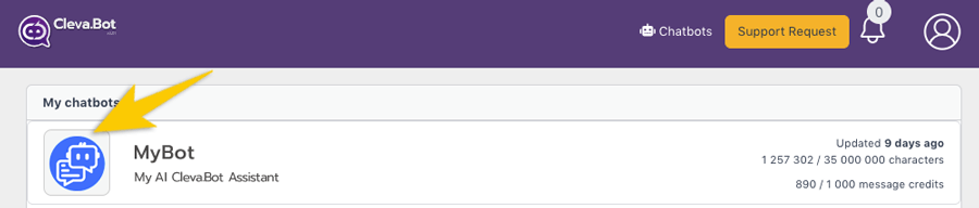 Sign in to my.cleva.bot and select your Cleva.Bot™ from the main page.