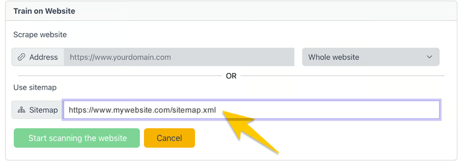 In the Sitemap field provide the url of your sitemap and click “Start scanning the website”.