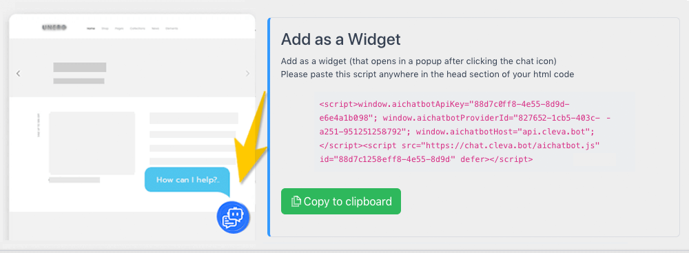 Deploying Cleva.Bot™ on your website can be done as a widget or an iframe. Widget is the recommended method.